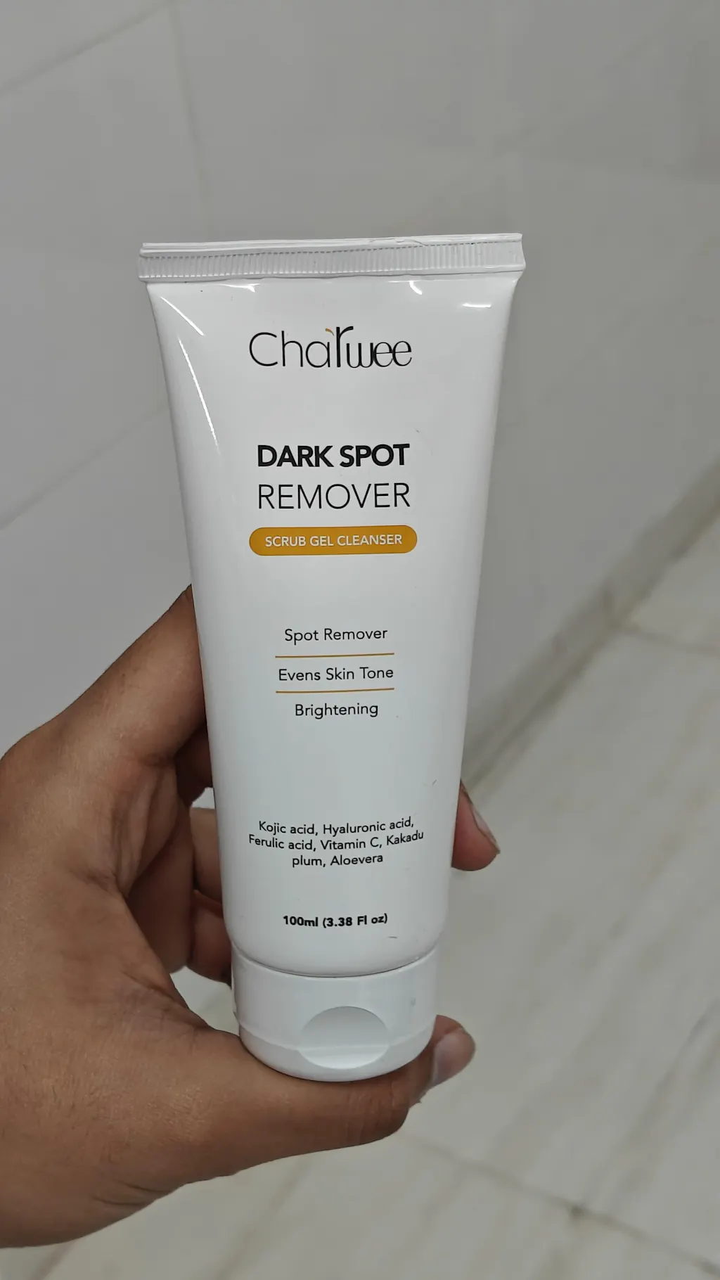 🔹 Step 1: Cleanse – Charwee Dark Spot Remover Scrub Gel Cleanser